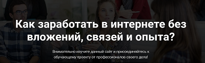 Наша цель — научить любого человека зарабатывать в интернете, вне зависимости от опыта, пола и возраста. Проект создан специально для новичков с самым минимальным набором знаний.