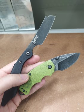 Здесь тема по первому, второй в руках не держал. По первому - размер шпенька, расположение шпенька, чойл. Ну и зависит от качества реплики, могут сделать и один в один. Тот же Pilar скопировали очень хорошо, только с расположением лого лажанулись, сместили его относительно отверстия на клинке. Бенч пару лет назад поддельный на али гулял, тот вообще опасный - только по качеству печати на коробке можно было отличить, а сам нож прямо идеальная копия.билли написал(а):Подскажите как отличить реплику от оригинала,шафл второй?