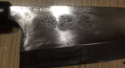 datunbao написал(а):Лот № 149. Япония. Кухонный нож. Деба. Не старая. Следы обработки очевидно фрезой. Сталь углеродка ? Не уверен что-то более жесткое. Хорошая сталь. Правосторонняя заточка. Достаточно острая. Общая длина 28 см. клин 16 см. Ширина 5 см. Толщина клина у хвостовика 4.75 мм. Вес 215 гр. Цена 2500 руб. Лот во Владивостоке, где можно посмотреть и забрать, или почта на покупателе.
