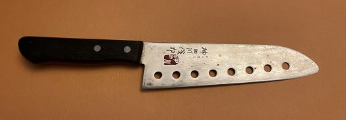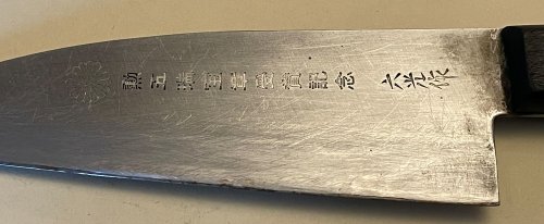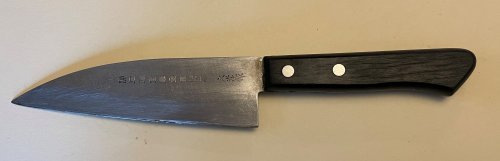 datunbao написал(а):Лот № 53. Япония. Кухонный нож. Сантоку. Santoku (三徳庖丁) Santoku-Bocho или Универсальный нож. Клин из трехслойного ламината. звонкий, красиво подписан по левой голомени во всю длину. Очень жесткий, у рукояти 3 мм. заточка обычная. Европейская монтировка, рукоять стабилизированное дерево. Длина 27 см. клин 15 . см. Старый нож автохтонной формы, когда то явно был элитным. Очень толковый нож. Тупой, не точен. Не мыл, не чистил. Цена 3200 руб. Лот во Владивостоке. Где можно посмотреть и забрать. Или почта на покупателе.