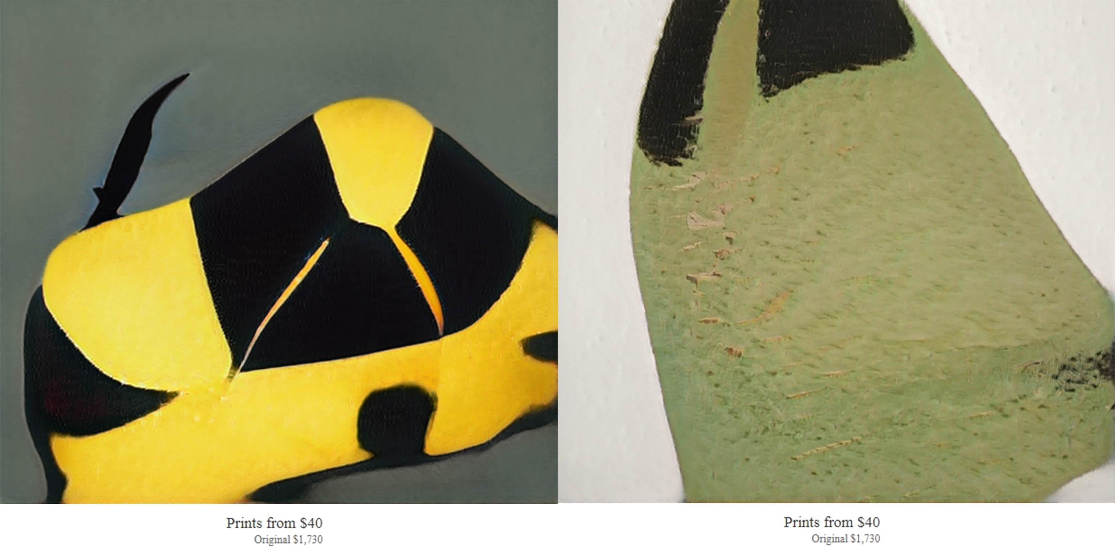 На основе генеративно-состязательной связи, я начал генерировать картины в стиле абстракций, и публиковать их под именем Розалии. Я отобрал разные забугорные сайты по продаже картин и начал там публиковать работы, созданные нейросетью.