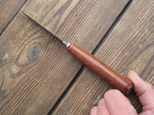 Сделалась вот очередная работа в состоянии когда надо бы что-то делать и не знаешь что именно. Решил заполнить пустоту изготовлением просто простого ножа для наработки опыта и чтоб руки занять. Ну вот что получилось. Название так и не придумалось.