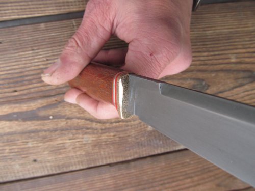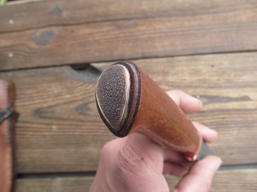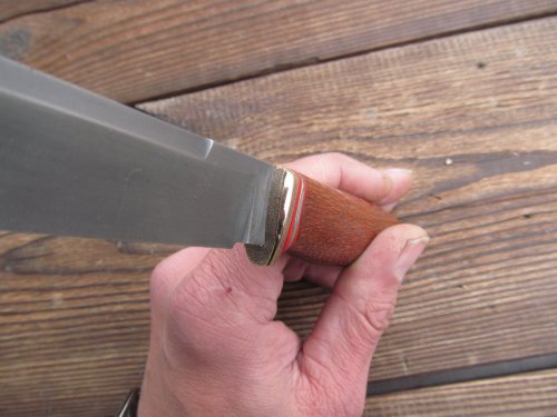 Рукоять 125х27х23 мм. Бронза, G10, нержа, лайсвуд. Монтаж сквозной на стяжку М4. Тыльник бронза на трёх штифтах и эпоксидке. Канфарение и чернение. Пропитка Данишем и шеллак.