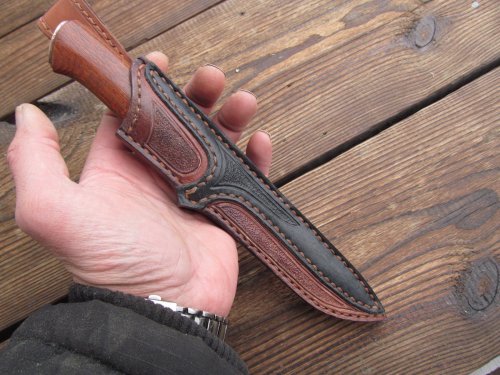 Ножны кожа РД от Колоб33, тиснение в меру сил, подвес свободный. Краски, пропитки, воски Саламандер и Салтон.