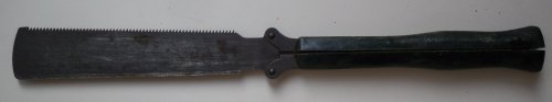Все нашлось - выходит складная ножовка с разными зубьями.zak написал(а):Складное мачете с пилой. Бабочка. Еще до Скрылева). Абсолютно оригинальная разработка с оригинальной защелкой рукояти. Производителя не нашел. 47 см.