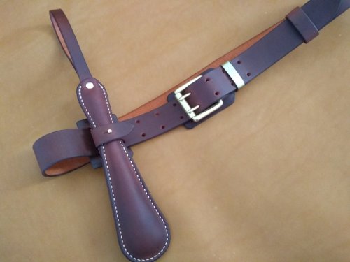 Длина 27см, ширина 7см, но можем сделать больше или меньше на заказ из кожи любого цвета.