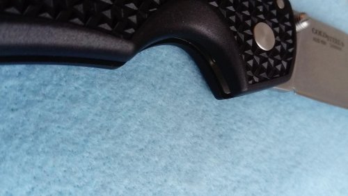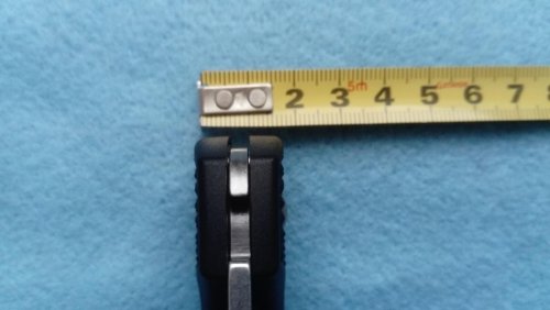 В совокупности с короткой и крайне жёсткой клипсой (их, кстати, две - левая/правая) я так и не смог посадить этот нож на карман ни домашних штанов, ни джинсов. А если это и получилось бы - не уверен, что край кармана прожил бы сколь-нибудь длительное время.