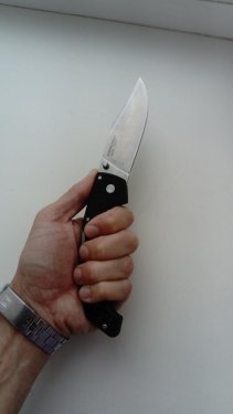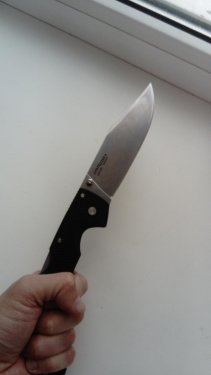 Складывать этот нож "на палец" можно, но очень аккуратно, тупьё не сильно большое: