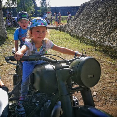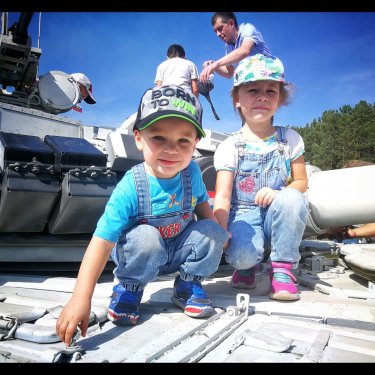 Три часа ползанья по броне (современная и историческая), еле выковырял мелких оттуда. Броневики типа Тигра детей не впечатлили, а вот всё, что с пушками и пулеметами, облазили по два раза.