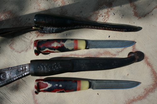 Ножны чепрак , тиснение , свободный подвес , краска Карат .