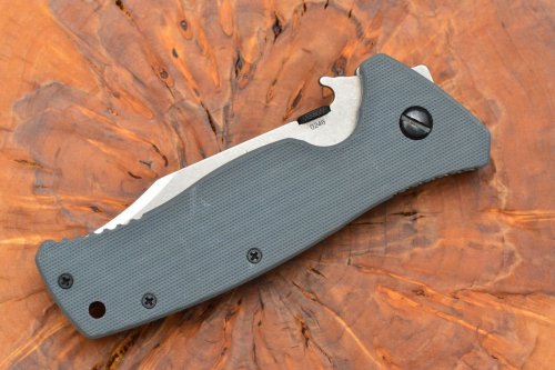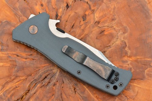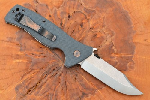 Полностью повторив форму клинка (отличие только в заточенном сведже у серийного ножа) и рукоять (конструктивно выпоненную не с толстым кастомным лайнером, а с обычным)