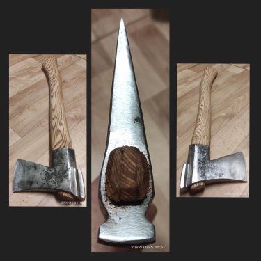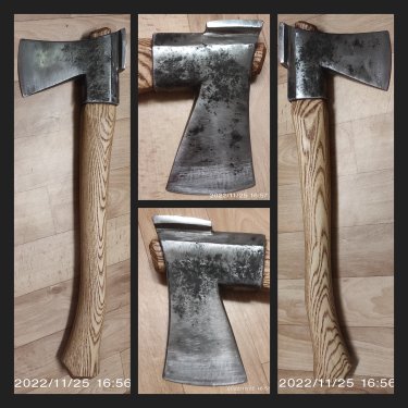 85-й. Billnas 12.1 . Убрал забоины и подправил заточку, очистка пескоструем. Высота головы 16,3 см, 9,7 см. Рукоять ясень длина 68 см. Общий вес 2000 г. 9500 плюс почта.