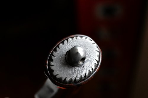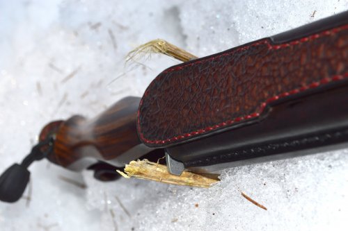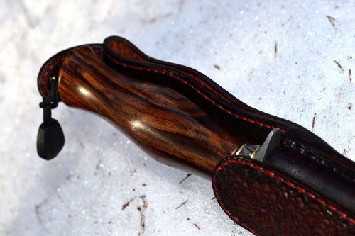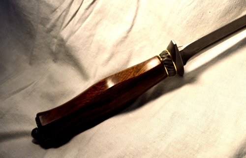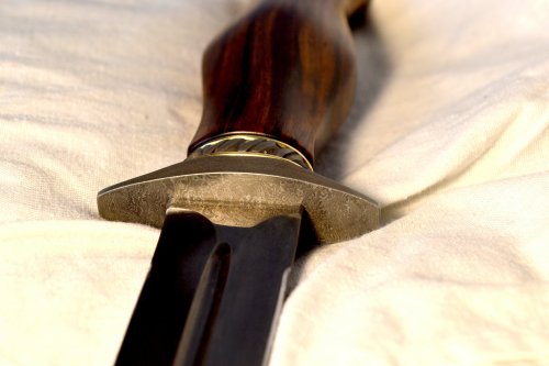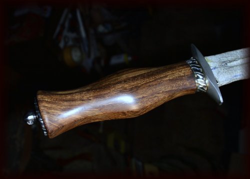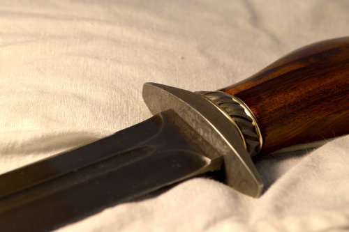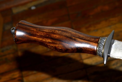 Монтаж: Сквозной на стяжку М5. Гарда и тыльник пролит смолой от попаданич влаги. Гарда, проставка, и тыльник- дамасск от Паши Быкова с выдержкой лет в десять... Колечки бронза. Нож не ХО, так как конвертный и лежит разобранный ждёт кому понравится...
