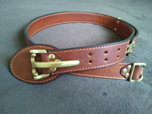 2. Ремень в стиле, "littleton". Двухслойный, выполнен из двух склеенных слоев кожи, прошит седельным швом, вощеной нитью. Надежная литая фурнитура. кожа обработана специальным составом на основе натуральных компонентов для защиты от влаги.