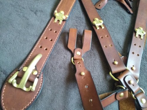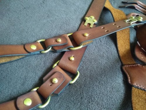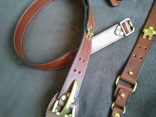 1. Подтяжки изготовлены из натуральной кожи толщиной 2,6-2,8мм. Надежная латунная литая фурнитура. Подтяжки укомплектованы и кожаными подвесами для ношения с ремнем и карабинами для ношения на шлевках брюк или джинсов.