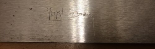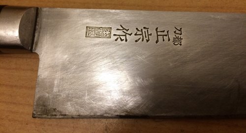 Лот № 65. Япония. Кухонный нож для резки лапши. Б.У. Общая длина 34 см. Клин 25 на 10 см. Толщина клина 2 мм, двусторонняя заточка. Сталь - нержавейка, какая-то японская разновидность. клин был ржавенький, но ржавчина смылась чуть потер. На РК у рукояти мелкие сколы. Т.е. сталь не мнется, колется. Очевидно должна очень остро заточиться Вес 317 грамм. Цена 1500 руб. Лот во Владивостоке, где можно посмотреть и забрать, или почта на покупателе.