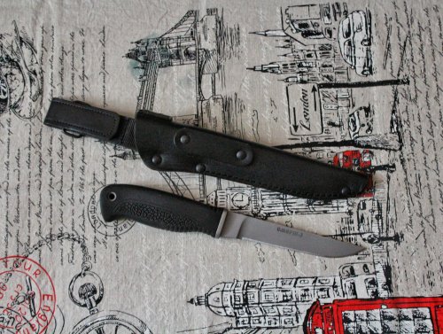 Leon A написал(а):Прикупил ещё один Смерш, на этот раз Смерш-3. Брал опять с рук, но нож оказался абсолютно новый, это видно и по ножнам - без замятен на коже, как-будто только что вышли из шорника, и по самому клинку - не царапан, не точен, с кривой РК, которая волной пошлаНо самое главное это клинок в 6мм толщиной - когда покупал, продавец не указывал параметры, а я не додумался спросить. Материал клинка, по паспорту, либо 50Х14МФ, либо 70Х16МФС, но какая именно - непонятно, на клинке маркировки нет. Закалка, в любой стали, 52 - 56 HRC, по современным меркам очень скромно..... посмотрю, как поведёт себя в работе....