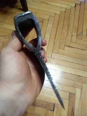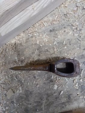 Очень симпатичный топорик Златоустовского завода. Дореволюционный. Чуть носик уточен, но не критично. Клейма хорошие. В насажено виде с правильным топорищем я бы просил 10 т.р.