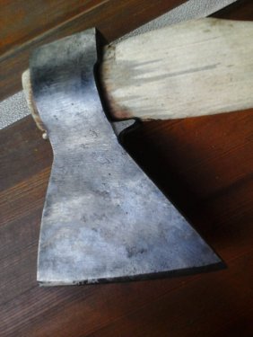 Согласен! Топор не мой, хорошего знакомого, таки он говорит, что хороший импортный надфиль не цепляет, пролетает со свистом... Осталось понять кто ж его сделал, что за клеймо!Silihit написал(а):Очень аккуратно сделанный