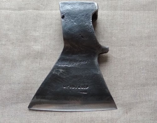 Коллеги, помогите, пожалуйста, с атрибуцией топора. На левой щеке читается клеймо *MAMANT*, выше этого глубокое клеймо, определить которое не могу. Ниже слабо читается еще одно круглое клеймо, на котором, как мне кажется, видны цифры 18... Форма интересная: как у немца, но с гвоздодером. Может, кому подобный попадался?