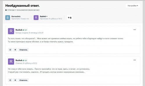 В дополнение к хамству и наглости в теме накатал мне в личку послание с оскорблениями и угрозами.
