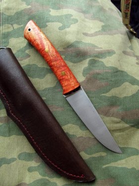 Ножны кожа. Подвес фиксированный + полукольцо для свободного подвеса или подвеса на карабин.