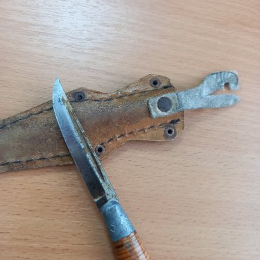 На ножнах порван подвес, на клинке имеется ржавчина, геометрия хорошая без потерь.