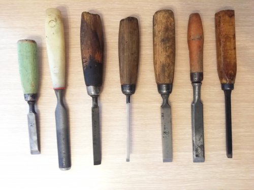 Выставлю немного по деревообработке. Стамески : Турбобур,ширина 10 мм,сталь 9хф,СССР .Слегка бу- 250 руб 16 мм.сталь 9хс ,уже Россия .Новые ,по 300 руб 25 мм,так же из 9хс,Россия ,присутствует точечная коррозия ,по 300 руб. Нижняя - 16 мм ,новая , предположительно Арефинский завод - 150р Ножи для рубанков : Крайний слева - 50 р, остальные по 150 любой. Если нужны доп .фото ,возникли вопросы и тд ,пишите в личку,любо в тему. Пересыл на покупателе, если берете всё,то за мой счёт.