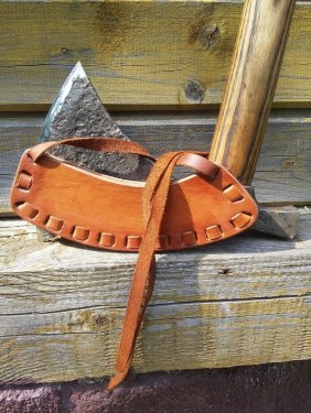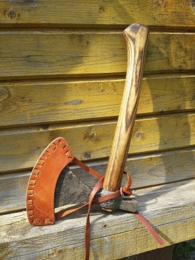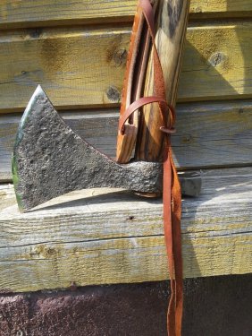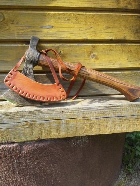 ИМХО: Когда буду делать аналогичный чехол для биллхука постараюсь укрепить шов хольнитенами, рассредоточенными вдоль прошивки. В качестве подвеса установлю два стальных полукольца сверху и снизу чехла, чтобы можно было использовать наплечный ремень, или крепить чехол к рюкзаку. ( потому, что на поясном ремне килограмм железа мне неудобно таскать - джинсы перекашивает). И, т.к. клапан довольно большой, просится в качестве застежки не одну кнопку использовать , а две курточных кнопки-кольцо .