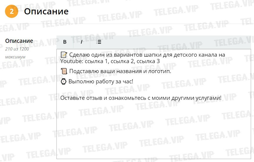 Вводим описание: используйте Emoji, расставляйте текст на абзацы и пишите грамотно!