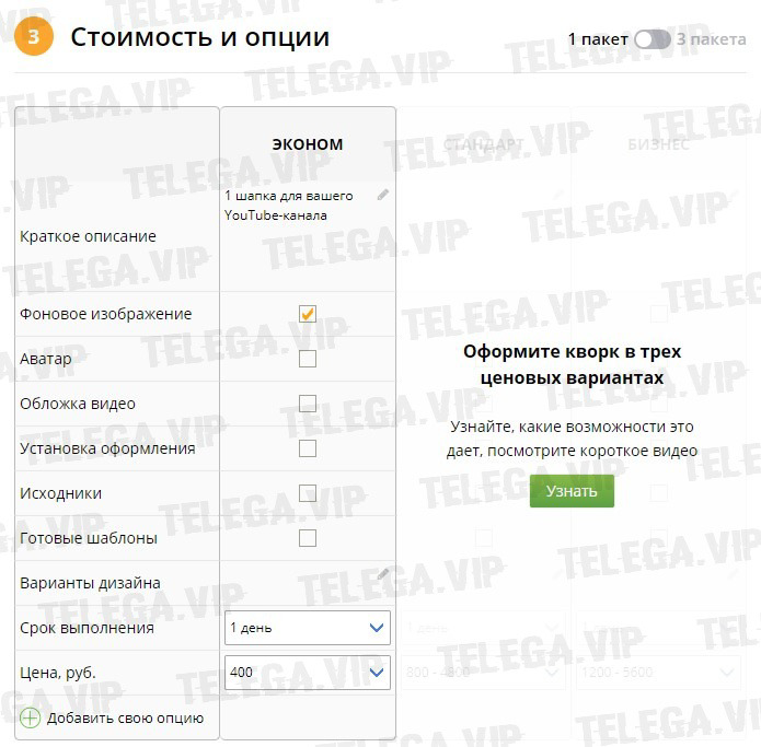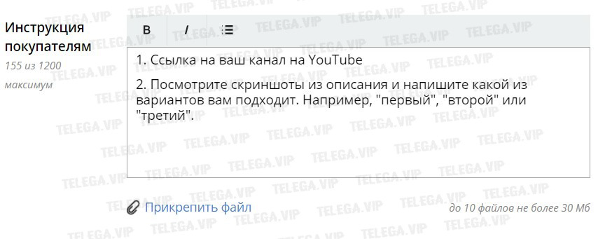 Инструкция для покупателя проста: пусть он укажет ссылку на канал и понравившийся вариант.