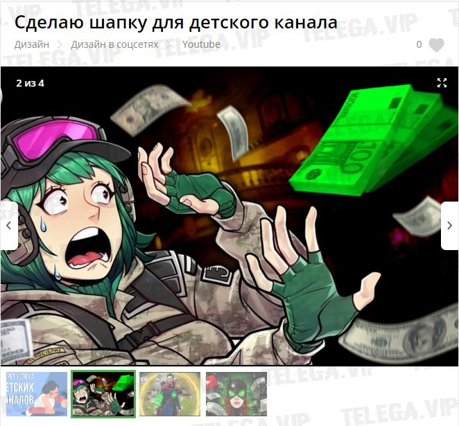 Но если мы чуток уйдём в сторону и напишем "Шапка для детского канала", то первым появится мой кворк, который я создавал для примера.