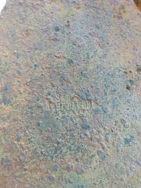 Так вот,появился у меня топор "Кондратовъ" с.Вачи.Порылся в интернете,вроде не частый.Топор из леса с позиций РККА.может поэтому и клеймо не полное(не видно год и орёл не полностью),а может глубже сидит.