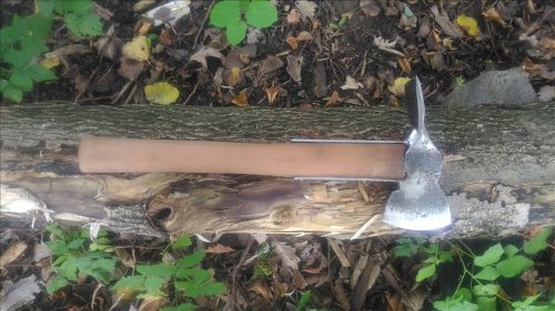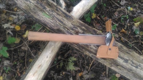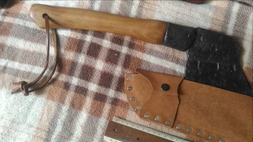 Топорище - вяз, 50 см. Кожаный чехол, пожилины. Немецкий пуласки. Общий вес 1,6 кг.