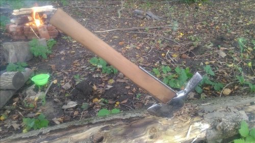 Мультитул. Топор + мотыга. Топор - немецкий малый сапер вермахта + мотыга от кирко-мотыги вермахта. Приварена вместо гвоздодера. Эта мотыга в лесу гораздо удобнее гвоздодера, окопать палатку, закопать кострище и т . д. Делался специально туристский вариант для ношения в рюкзаке. Хотя в машине еще лучше. Топор теперь очень прилично рубит и колет поленья.
