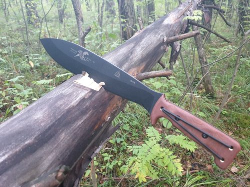 Баланс ножа, естественно, довольно сильно смещен вперед, в клинок. Что хорошо для рубки.