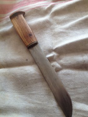 Думаю что из него сделать??? тесак какой? мечете- недостаточно длины и слишком толстый? что нибудь леукообразное? либо переточить на боуи?? убирать ли каверны.. если убирать останется около 3-3,5мм толщины.. или сточить по длине и сделать большой лагерный нож.. Подскажите свои мысли, поделитесь опытом