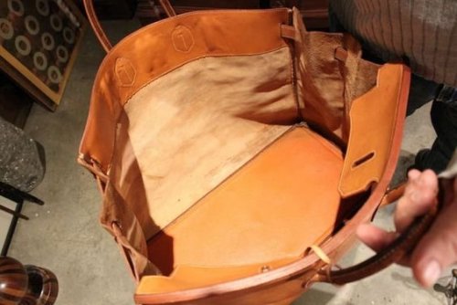 Кожа здесь не просто светлая - она некрашеная, своего природного цвета и требует ниток такого же природного, естественного цвета.
